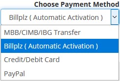 We accept various payment methods, such as Bank Transfer (Online Transfer/ATM Transfer/Cash Deposit), or DuitNow QR Pay (any bank & e-Wallet), or Billplz (Automatic Activation), or Credit/Debit Card.